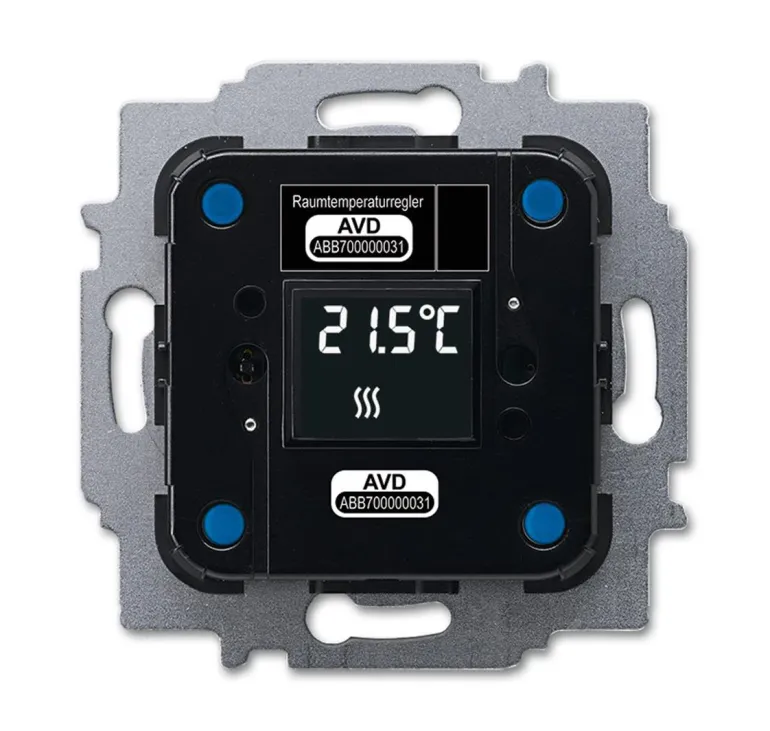 Lämmitys/jäähdytys. Langaton ohjauselementti huonelämpötilan säätöön integroidulla tulo-/lähtöyksilöllä. Näyttö, jossa esitetään asetettu lämpötila. Käytetään yhdessä vain ABB-free@home-keskiölevyjen CP-RTC-xx kanssa.