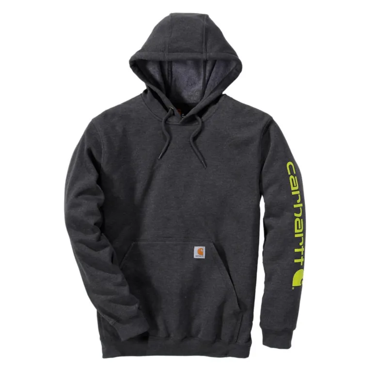 Mukava ja kestävä huppari Carharttin keskipaksusta puuvillasekoitteesta (midweight cotton blend). Loose Fit -istuvuudella (Long Sleeve). Reilun kokoinen etutasku käsien lämmittämiseen, joustavat, elastaanilla vahvistetut resorit hihansuissa ja helmassa sekä Carhartt-painatus vasemmassa hihassa. Carhartt-logomerkki ommeltuna taskun yläreunaan.