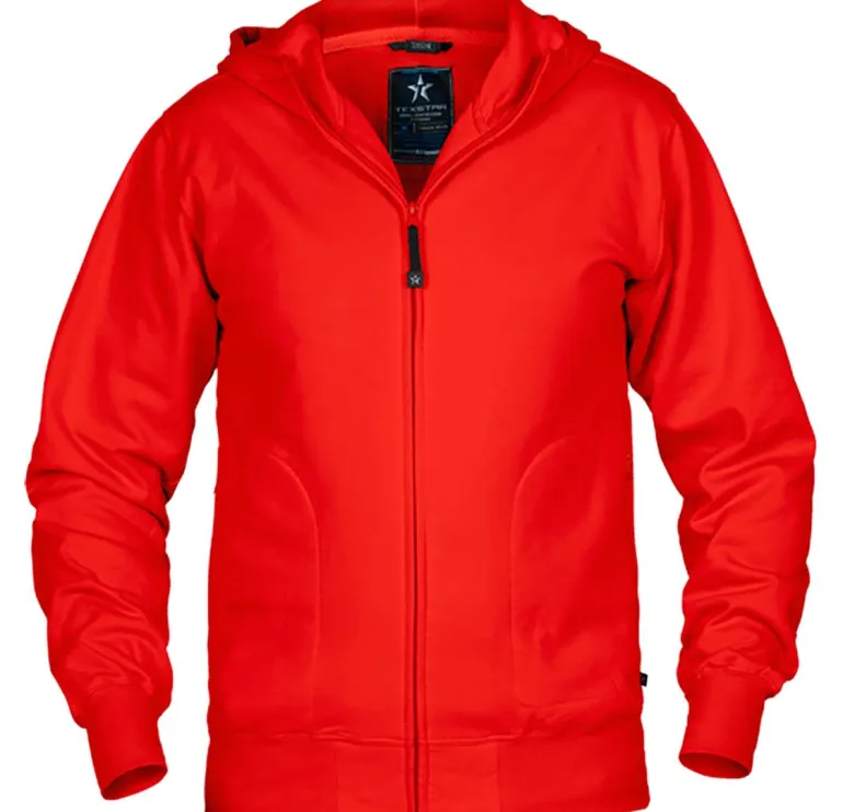 Texstar HC03 on huppari vetoketjulla ja korkealla kauluksella. Laadukas huppari, joka pitää hyvin muotonsa. Piilosivutaskut vahvistavat muotokieltä ja leveät resorit takaavat istuvuuden myös paljon liikuttaessa. Hyvä värinkesto.