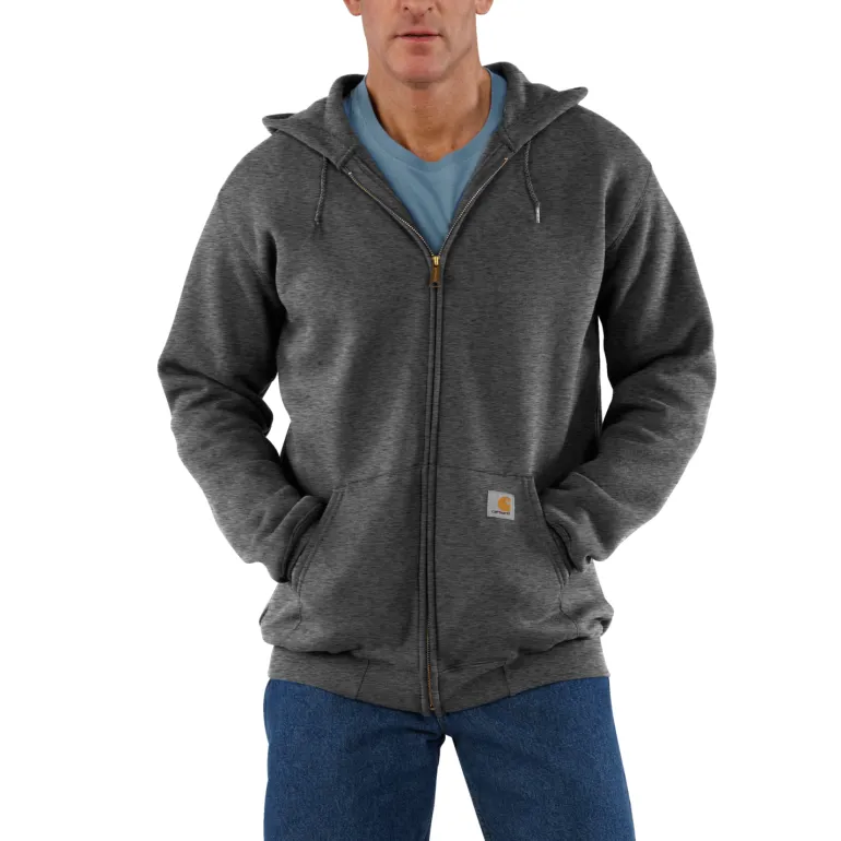 Carharttin mukava ja kestävä huppari keskipaksua puuvillasekoitetta (midweight cotton blend). Istuvuus Loose Fit (Long Sleeve). Hupparissa täyspitkä vetoketju edessä, kaksi etutaskua ja nyörillinen kolmiosainen huppu. Joustavat, elastaanilla vahvistetut ribbineulotut hihansuut ja helma sekä Carhartt-logomerkki ommeltuna etutaskuun.