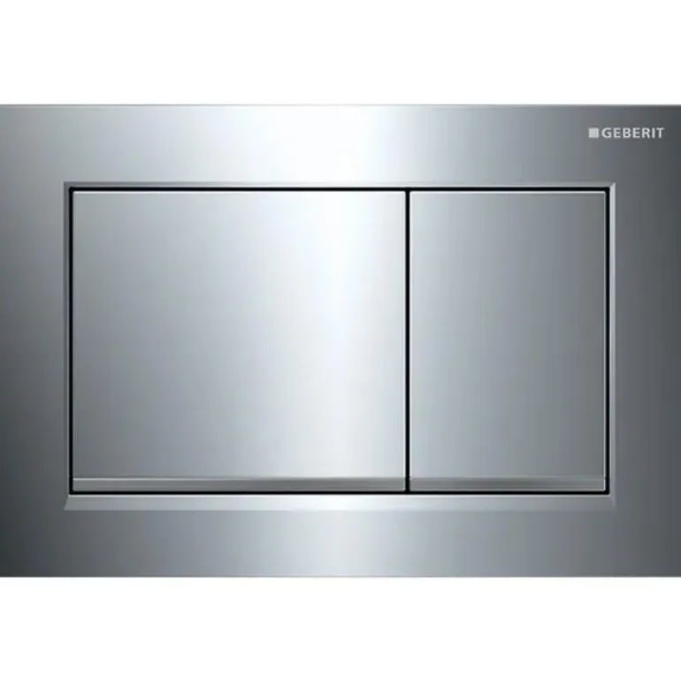 Kiiltokromattu huuhtelulevy kaksitoimisella huuhtelulla, pieni malli. Käyttö ylä- ja etupuolelta ja ääntä vaimentavat painotangot. Uppoasennettavien Geberit Omega -säiliöiden huuhteluun.