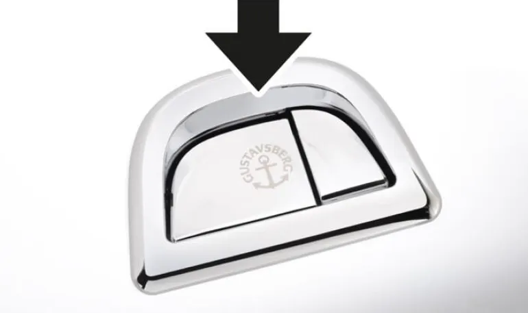 Gustavsberg Nautic Vandal-vaihtopainike yksinkertaiseen huuhteluun (singe-huuhtelu). Kestävä rakenne, joka soveltuu hyvin julkisiin tiloihin. Sopii kaikkiin Nautic-sarjan vuoden 2017 jälkeen valmistettuihin WC-istuimiin.