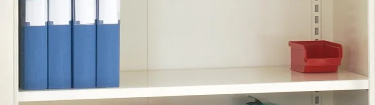 Kestävän ja tukevan MF4-metallikaapin hylly. Hyllyt ovat irrotettavissa ja kestävät 100 kg tasaista kuormaa.