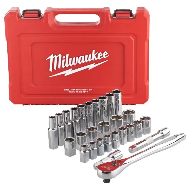 Milwaukee 4932471864 on hylsyavainsarja, jossa hylsyjen mitat on stanssattu tasaiselle puolelle helpon luettavuuden varmistamiseksi. 90-hampainen, 4 asteen kulmaan taivutettu räikkäpää sopii ahtaisiin työkohteisiin