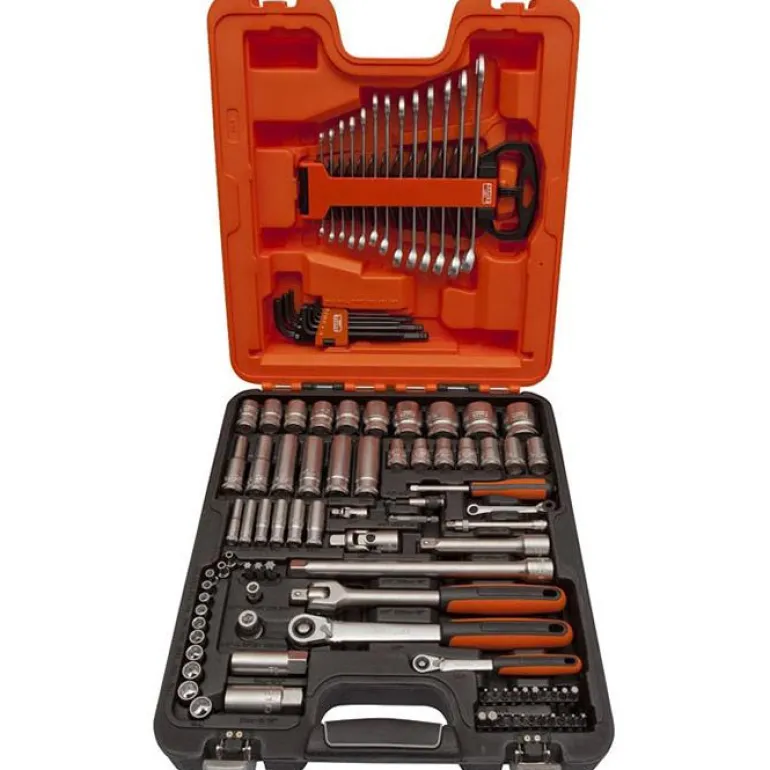 103-osainen hylsyavainsarja, jossa 1/4″- ja 1/2″-kiinnitys sekä kiintolenkkiavaimia. Toimitetaan käytännöllisessä HDPE-muovilaukussa.