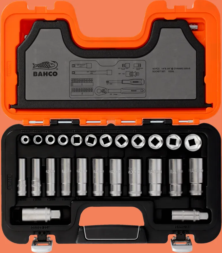 12 x 3/8″ kuusiohylsyjä: 10, 11, 12, 13, 14, 15, 16, 17, 18, 19, 20 ja 22 mm