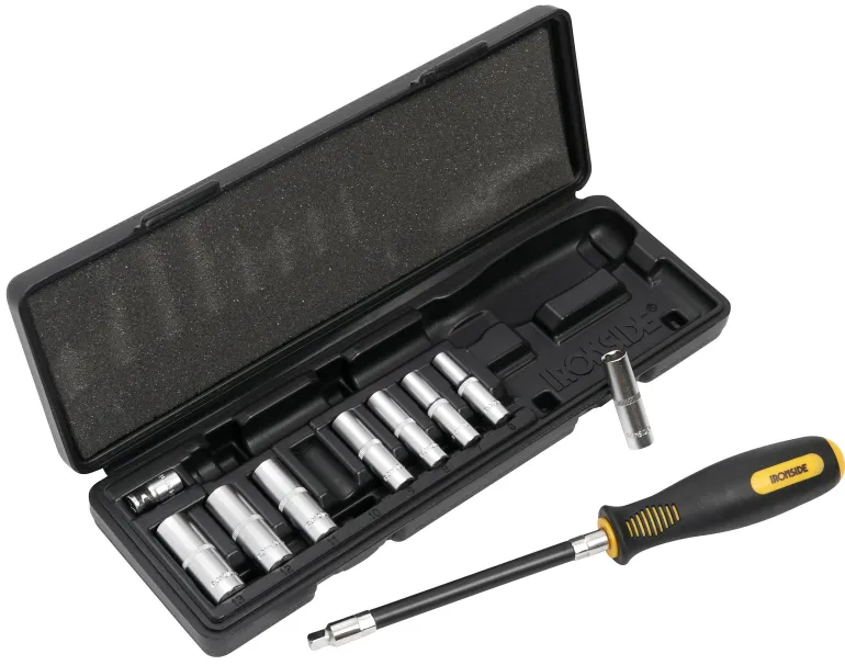 Sopii esim. sekoitinasennuksiin, hylsykoot kaikkiin tavallisiin sekoittimiin. Sarja pitkiä hylsyjä, mattakromattua kromi-vanadiiniterästä. Taltassa ergonomisesti muotoiltu kahva ja kumipäällysteinen taipuva terä naarmuttumisen estämiseksi. Pituus: 270 mm. Super Lock -hylsyt säilyttävät pultin kuusikulmaisen muodon. Toimitetaan kestävässä muovirasiassa, 330 x 100 x 50 mm.