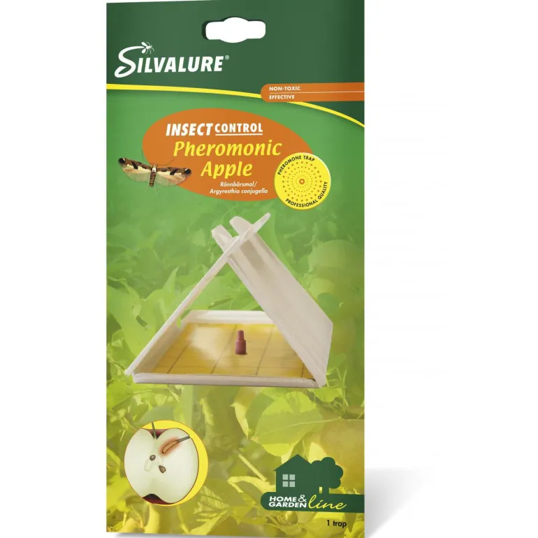 Hyönteisloukku, joka suojaa omenapuita pihlajanmarjakoilta (Argyresthia conjugella), joiden toukat hyökkäävät omenoiden kimppuun. Ansassa on feromonipiikkejä, joiden vapauttama tuoksu houkuttelee uroksia, jotka jäävät kiinni liima-ansaan.