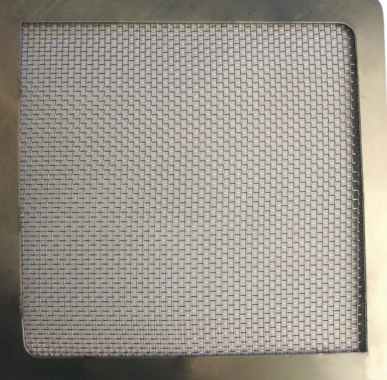 Hyttysverkkokehys, jonka mitat ovat 152 x 152 mm. Kehys on kokonaan ruostumatonta terästä.