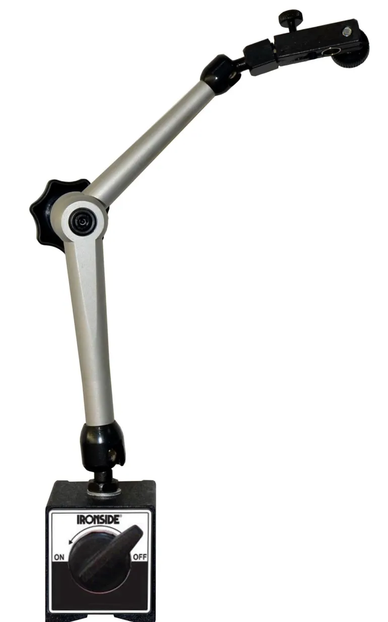 Joustava ilmaisinjalusta, jossa keskuslukitus, hienosäätö ja prismamainen jalka. Irrotettava magneettinen pohjalaatta, 65 x 50 x 55 mm, kiinnitysvoima 60 kg.