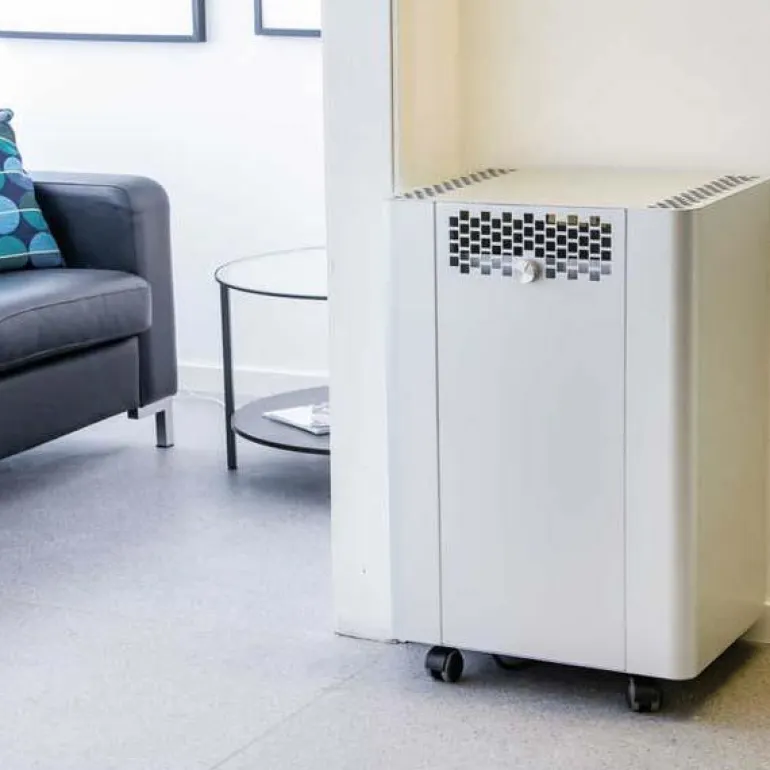 Pienempiin tiloihin, kuten toimistoihin tai huoneistoihin sopiva ilmanpuhdistin. Puhaltimen tilavuus on 520 m3/h ja se soveltuu jopa 150 m2 tiloihin.