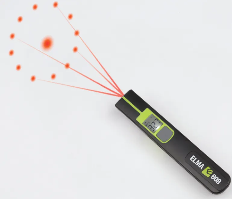 Elma 608 on kätevä, kynän muotoinen IR-lämpömittari, joka mahtuu näppärästi rintataskuun. Se mittaa helposti, nopeasti ja ilman kosketusta mitattavaan pintaan.