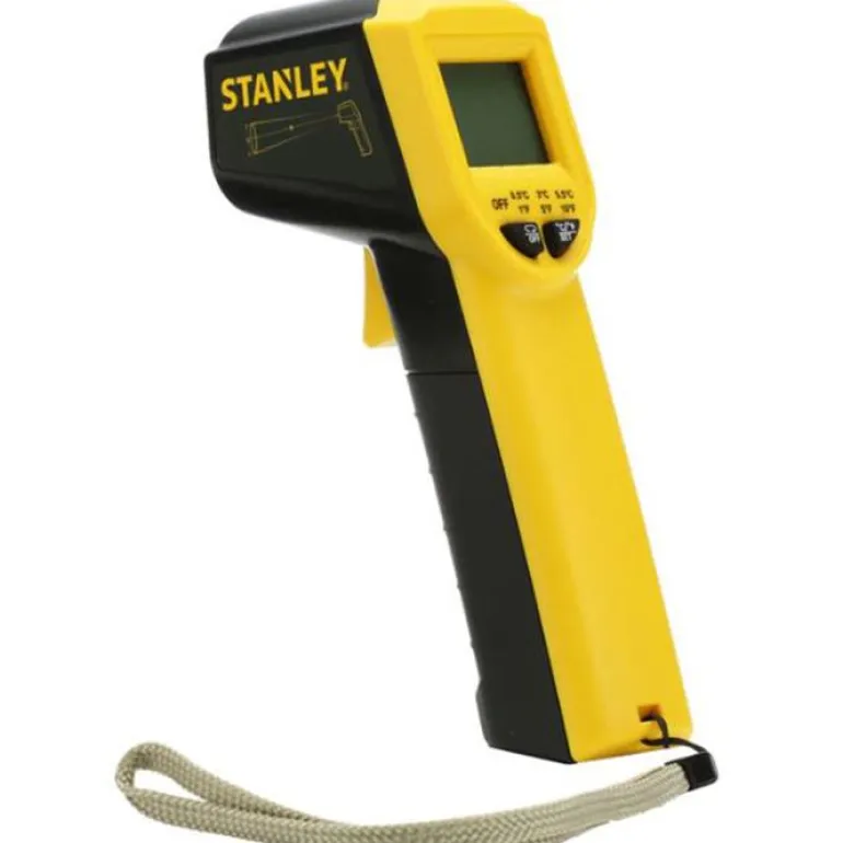 Kestävä infrapunalämpömittari integroidulla laserosoittimella. Antaa tarkat mittaukset ilman lämpömittarin ja materiaalin välistä kosketusta.