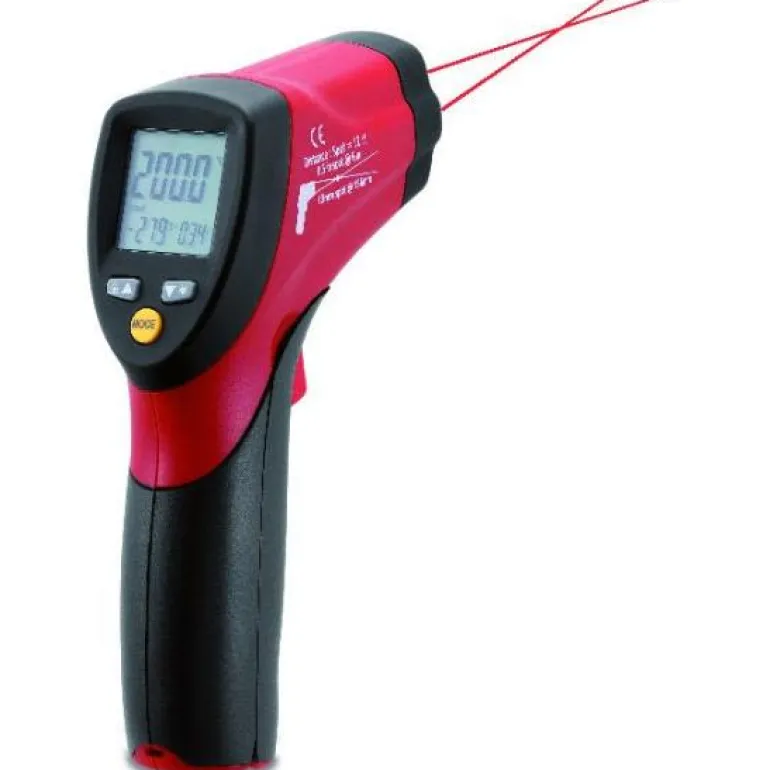 Tämä infrapunalämpömittari mittaa lämpötilan –50 – 550°C kohteeseen koskematta ja käyttää laserkohdistinta. Säädettävä emissiivisyys ja 12:1-optiikka.
