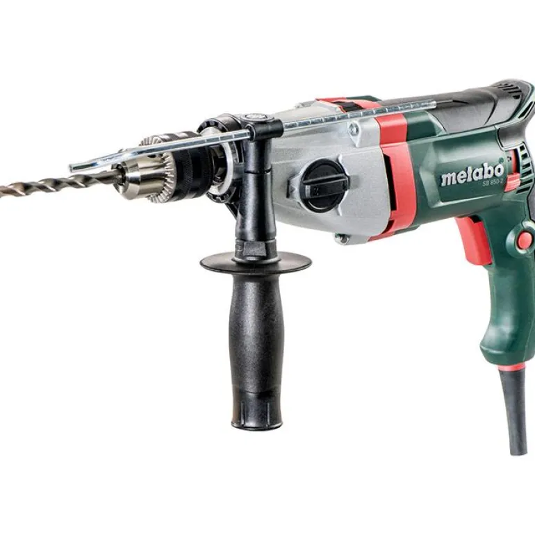Metabo SB 850-2 on 850 W:n iskuporakone, maks. vääntömomentti 36/14 Nm. Kytkettävä iskutoiminto tiukasti kiinni olevien ruuvien avaamiseen sekä sileiden pintojen poraamiseen