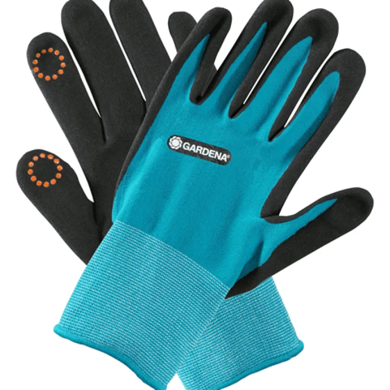 GARDENA istutuskäsineet kokoa M ovat erinomaiset kukkien istuttamiseen, maan möyhentämiseen tai rikkaruohojen kitkemiseen. Käsineiden nitriilipinnoite on erityisen käytännöllinen, sillä se suojaa käsiäsi kosteudelta, kun työskentelet kostean maaperän parissa. Lisäksi istutuskäsineet ovat hengittävät, joten kädet eivät hikoile vaativimmissakaan puutarhatöissä. Peukalon ja etusormen kätevä Mobile Touch -pinta mahdollistaakin älypuhelimen kosketusnäytön käytön käsineet kädessä. Nämä hyvin käteen istuvat puutarhakäsineet on Öko-Tex® 100 -sertifioitu, joten niissä ei ole käytetty lainkaan haitallisia aineita.