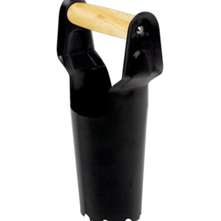 Istutustyökalu, jossa on mukava, tukeva puukahva. Työkalulla on helppo poistaa maata ennen sipulien istutusta. Metalliosat pinnoitettu epoksilla, jotta multa irtoaa helposti, suojaa samalla ruosteelta.