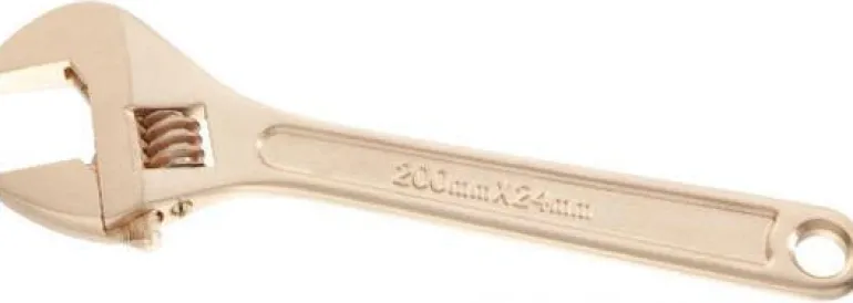 Jakoavain, jonka materiaalina erikoisvalmisteinen kipinätön ja ei-magneettinen kupari-berylliumseos. Kokonaispituus 300 mm, enimmäisoteleveys 36 mm.
