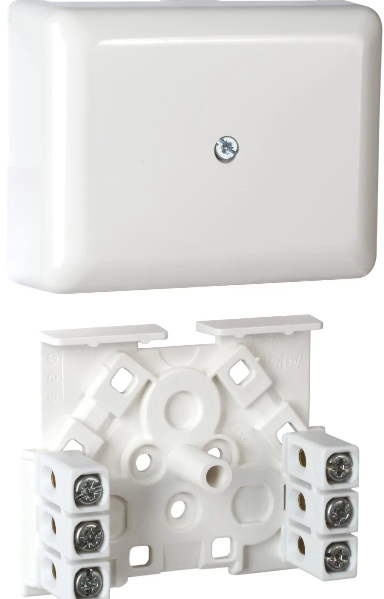Kestomuovinen kuivan tilan jakorasia kahdella siirrettävällä 3-osaisella ruuviliittimellä. Lähdöt tehdään ELKOn sähköasentajan veitsellä tai pihdeillä. Sisältää ruuviliittimet.
