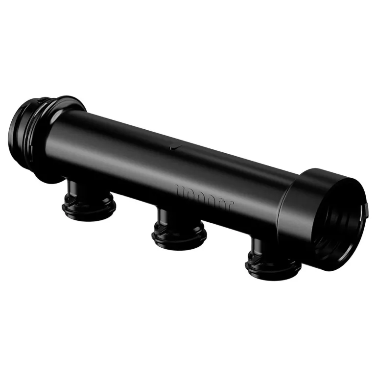 Uponor Aqua Plus 2054464 on PPM-jakotukki bajonettikierteellä piirien liittämistä varten. Jakotukki on suora ja läpikulkeva, ja se on valmistettu PP-SU: sta (polyfenyylisulfoni).