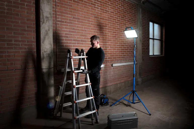 Tukeva AS250-jalusta on varustettu yleiskiinnikkeellä c/c 85–155 mm, M10:een asti, mikä mahdollistaa useimpien työvalaisimien asentamisen jalustaan. Vankka rakenne tekee jalustasta vakaan myös täysin avatussa asennossa.