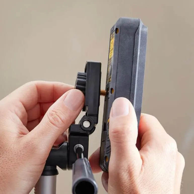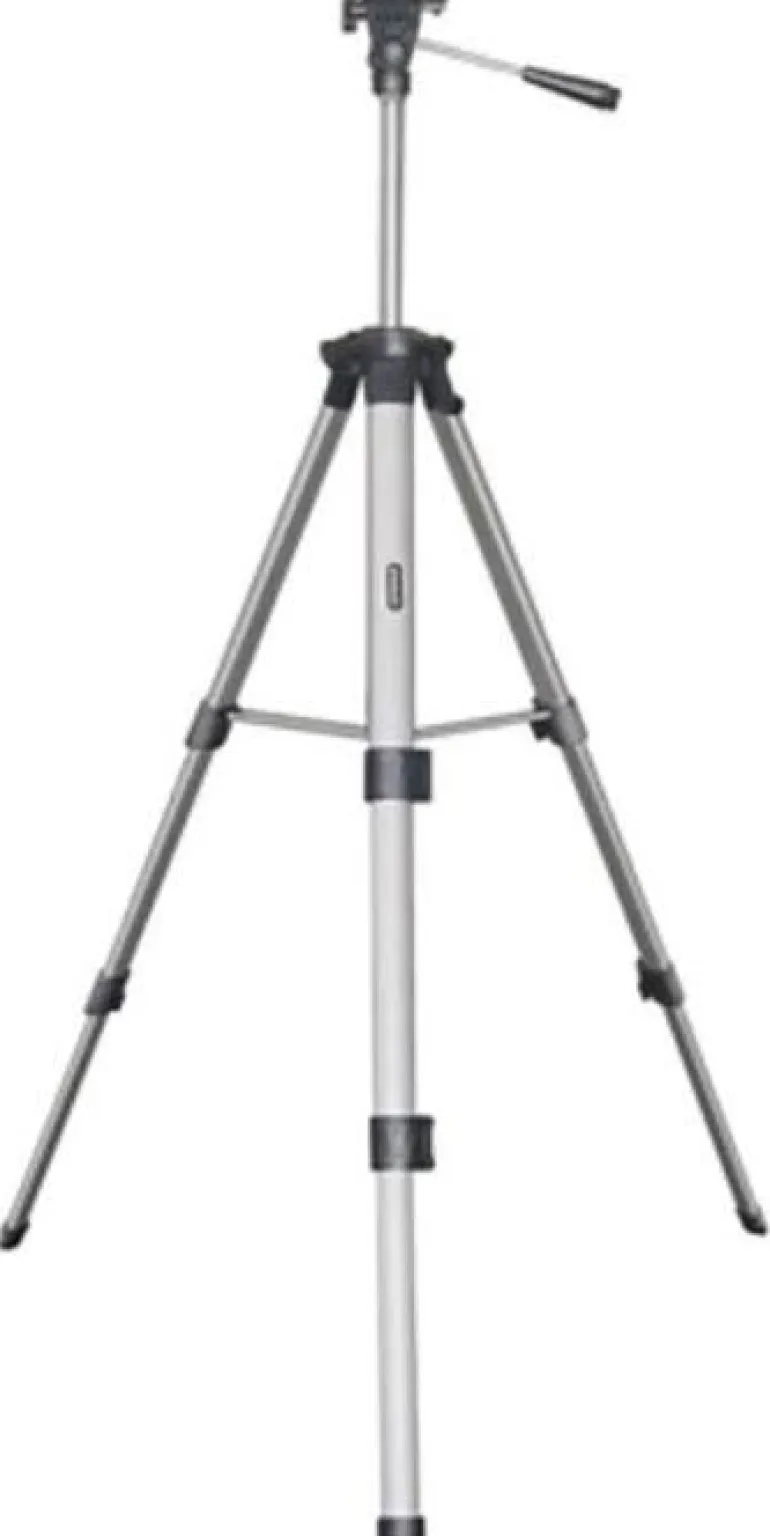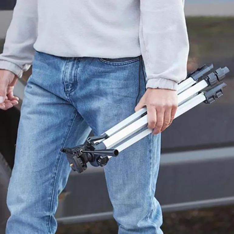 Kompakti ja tukeva jalusta, jonka korkeus on säädettävissä 44 cm – 119 cm. Integroitu tasaus. Varustettu kääntyvällä jalustan päällä sekä 1/4″-kierteellä.