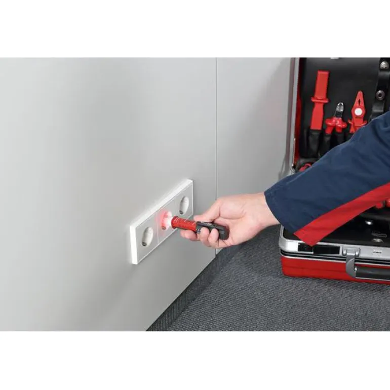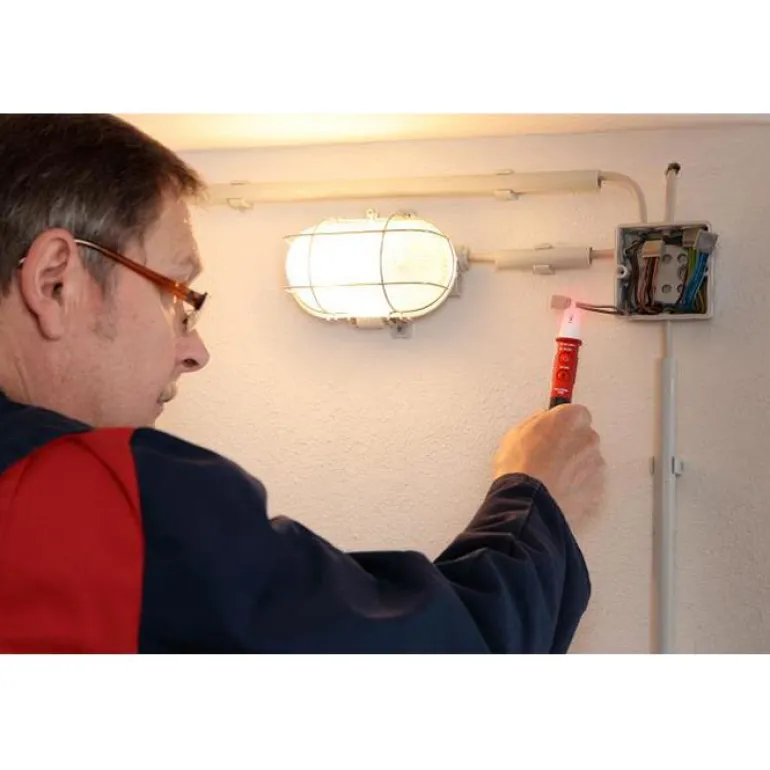 Kosketukseton jännitteenilmaisin, jännitealue 12–50 V AC, 50–1000 V AC, 50–400 Hz. Vaihtojännitteen havaitsemiseen sähköjärjestelmää häiritsemättä.