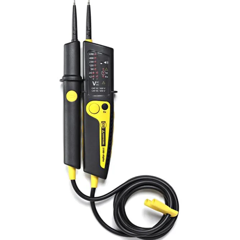 Beha-Amprobe 2100-ALPHA on kaksinapainen jännitteenkoetin enintään 690 V:n AC/DC-jännitteen automaattiseen koettamiseen ja jatkuvuuden tarkistamiseen vaikeissa olosuhteissa teollisuuden ja teknisen kaupan aloilla.