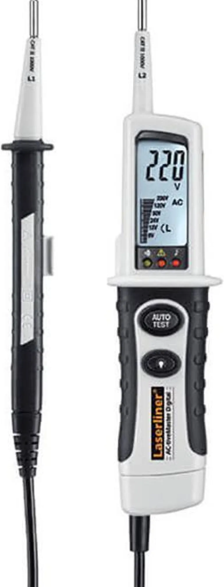 Laserliner ActiveMaster Digital on läpivienti- ja jännitetesteri, jossa on pylväilmaisin ja mitattujen arvojen numeerinen ilmaisin. Mittari on varustettu tukevalla, helppokäyttöisellä kotelolla, jossa on kiinteä mittauskärkien väli.