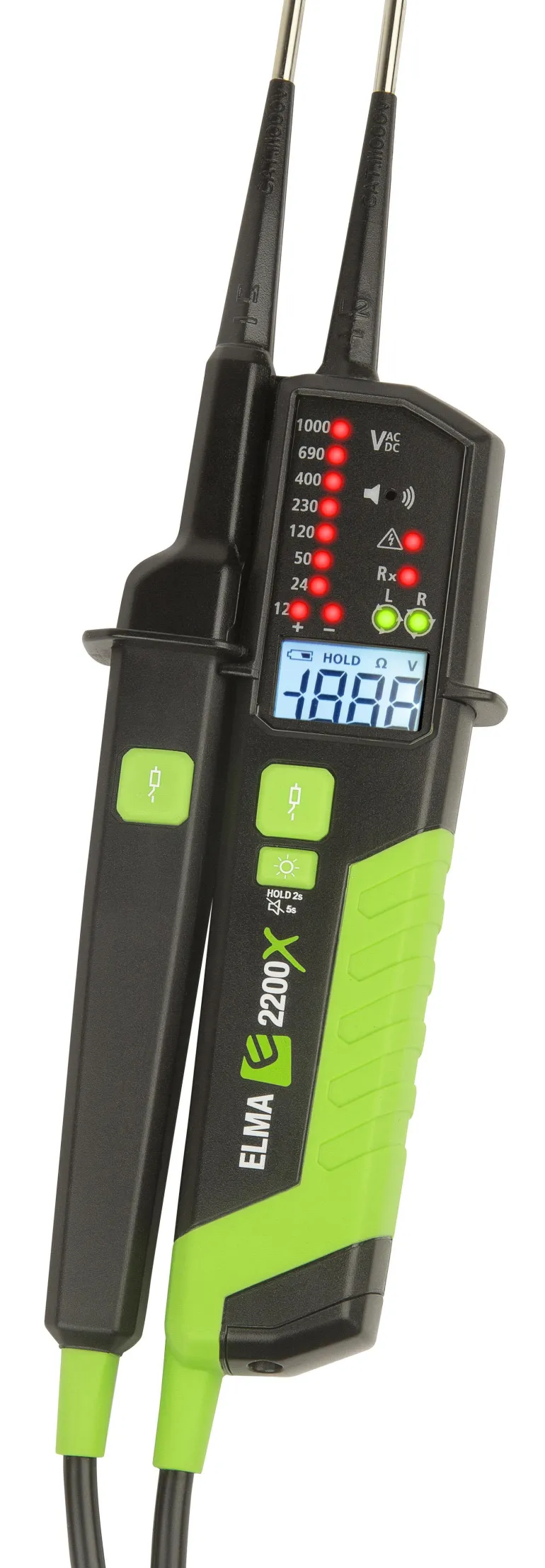 Jännitetesti, kaksinapainen valodiodeilla 12…1.000V AC/DC. Jännitteenmittaus digitaalisella näytöllä 6…1.000V/1.500V AC/DC. Läpäisytesti sekä resistanssimittaus 0-1999Ω. Napaisuudentunnistin, vaiheen osoittava yksinapainen jännitetesti. Vaihejärjestystesti/kentän kiertosuunnan testi, kaksinapainen kolmivaiheverkolle. Laite on jännitemittausdirektiivin (jännitemittausdirektiivi jännitteettömille tiloille) mukainen. Hyvin vankat vahvasti kiinnitetyt johdot. Vaihdettavat testauskärjet 2/4mm.