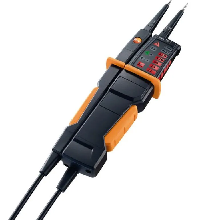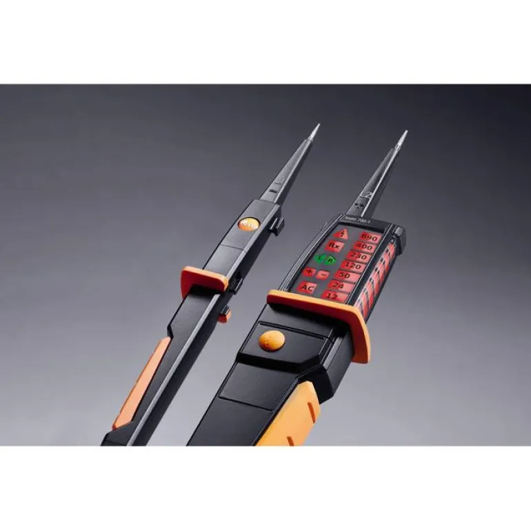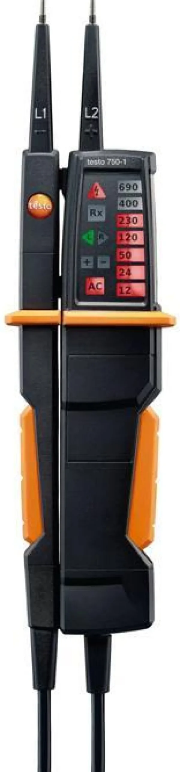 Testo 750-1 -jännitteenkoettimessa on tukevan otteen takaava pysäytinreunus ja LED-näyttö, joka näkyy joka suunnasta ja näyttää jännitteen tarkasti ainutlaatuisen kuituoptiikan ansiosta. Täyttää jännitetesterin uusimman standardin (EN 61243-3:2010) vaatimukset ja on CAT4-turvallisuusspesifikaatioon mukainen. Laitteen testausalue on 12–690 V ja se sisältää tärkeimmät toiminnot jännitteenkoetukseen, jatkuvuustestaukseen ja pyörivien magneettikenttien mittaukseen. Mittausluokat CAT4/600 V CAT3/1000 V, suojausluokka IP64.