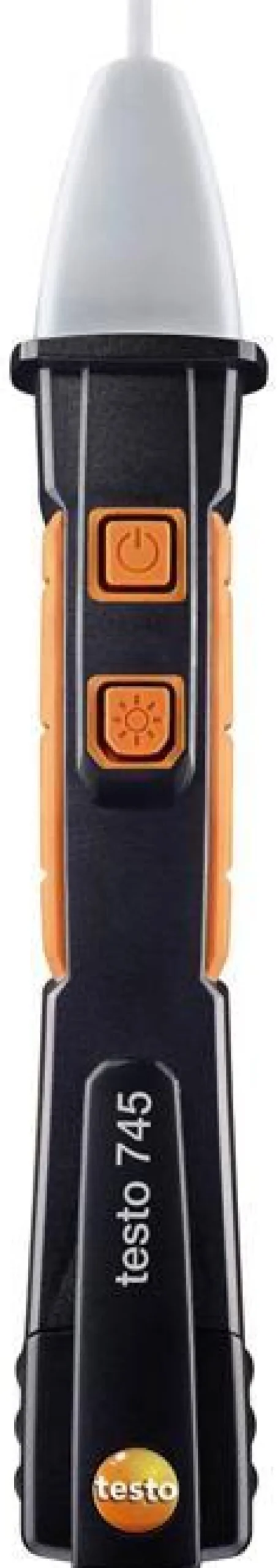 Testo 745 on kosketukseton jännitteenkoetin, jossa on mittauskohdan valaisu ja enintään 1000 V:n jännitealue. Sopii epäiltyjen vianlähteiden nopeaan alkutarkastukseen. Testo 745:ssä on selkeät valo- ja äänimerkit, jotka aktivoituvat, kun jännite havaitaan. Luotettavuuden lisäämiseksi jännitteenkoetin suodattaa pois suurtaajuushäiriösignaalit. Laite on myös vedenpitävä ja pölynkestävä suojausluokan IP 67 mukaisesti. Testo 745:n mitat: 155 x 25 x 23 mm, käyttölämpötila: -10…+50 °C.