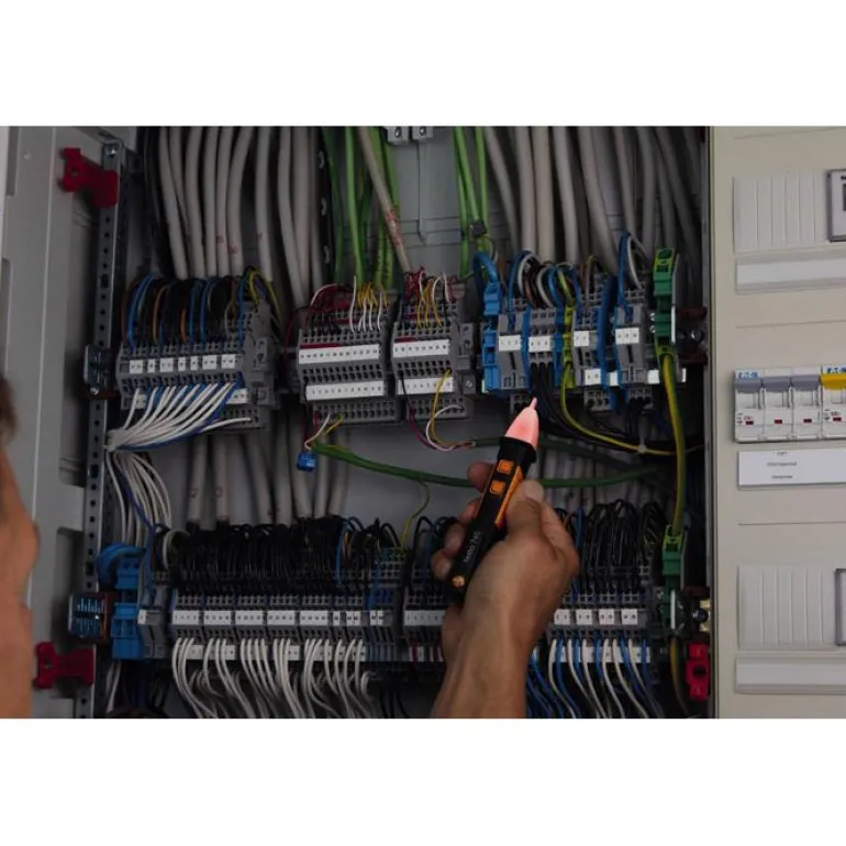 Kosketukseton jännitteenkoetin, jossa on mittauskohdan valaisin ja enintään 1000 V:n jännitealue. Sopii epäiltyjen vianlähteiden nopeaan alkutarkastukseen. Suodattimet korkeataajuisille häiriösignaaleille ja selkeät valo- ja äänimerkit. 155 x 25 x 23 mm.