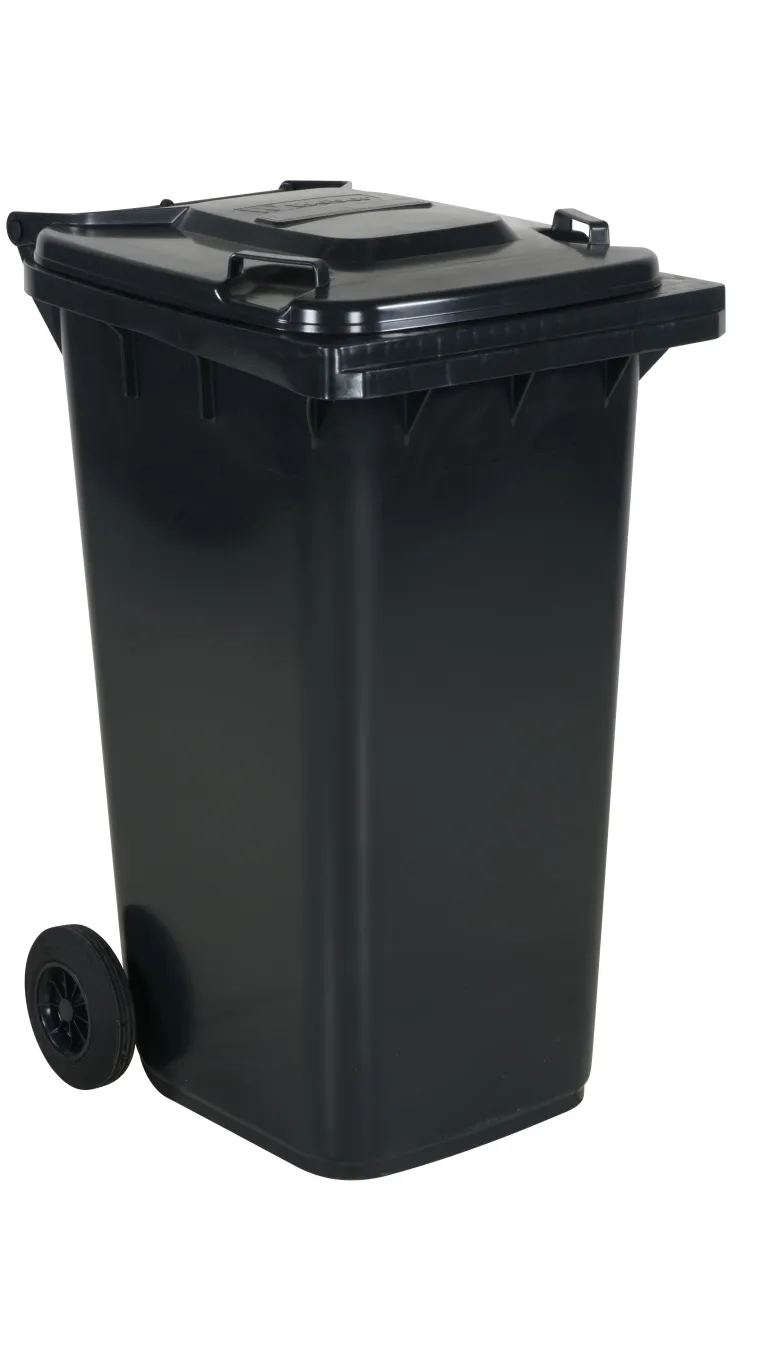 Tukeva HDPE-roska-astia. Helppo puhdistaa. Kumipyörät, teräksinen pyöränakseli. Valmistettu muotoon puristetusta polyeteenistä (HDPE). Kestää lämpöä, kylmyyttä, kemikaaleja, UV-säteilyä yms. Saatavana koot 120 l, 240 l ja 360 l. Sopii öljyisille jätteille, kuten räteille ja öljynsuodattimille, sekä lasille, paperille, muoville, metalleille ja roskille. Täyttää TUV-standardit.