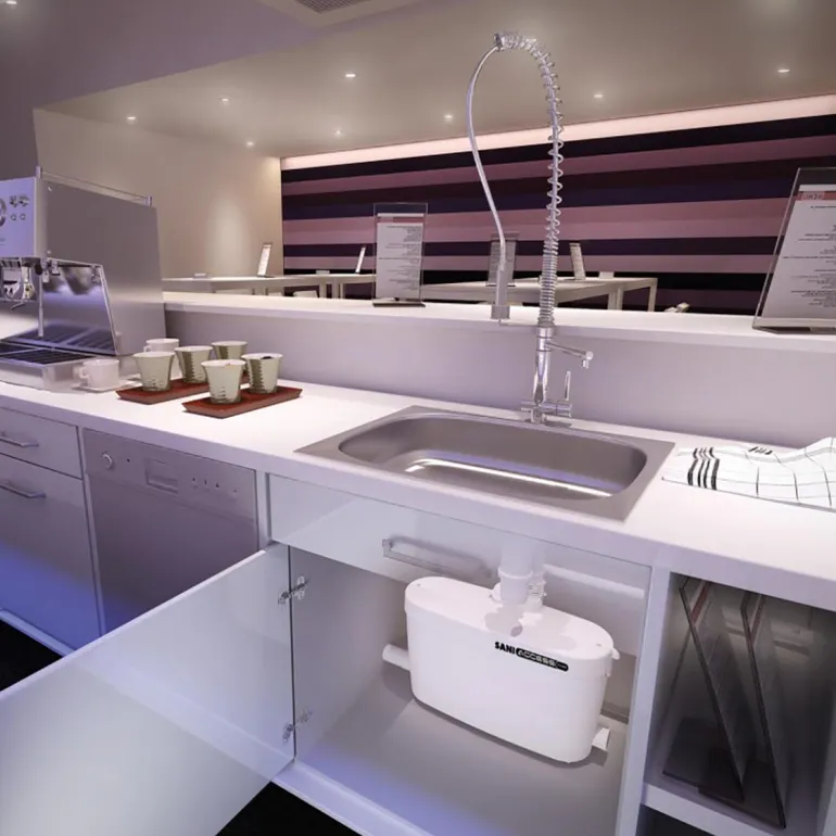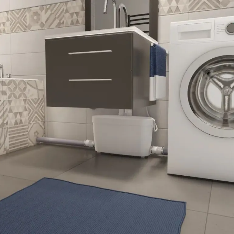 Pienjätevesipumppu (pienjätevesipumppaamo) keittiöön ja kodinhoitohuoneeseen. Jätevesipumppu, jossa helposti saavutettava säiliö ja elektroniikka helpottamassa huoltoa. Pumpun avulla voit esim. rakentaa uuden keittiön, siirtää kodinhoitohuoneen tai asentaa pyykin- tai astianpesukoneen haluamaasi tilaan. Se kykenee pumppaamaan jäteveden jopa 5 metrin korkeuteen kylpyhuoneesta (suihku, kylpyamme, pesuallas ja bidee), keittiöstä (allas ja astianpesukone) sekä kodinhoitohuoneesta (pyykinpesukone) lähimpään viemäriputkeen.