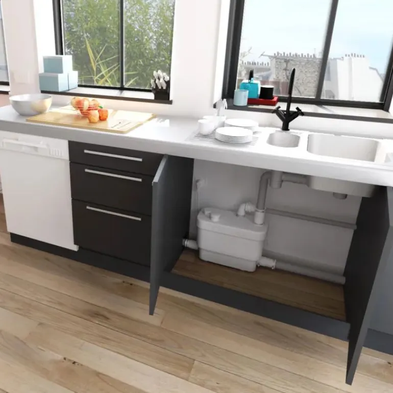 Sanivite + on kompakti pumppu keittiöön tai kodinhoitohuoneeseen. Tämä pienjätevesipumppu (pienjätevesipumppaamo) sopii sinulle, joka haluat asentaa keittiön tai kodinhoitohuoneen tilaan, jossa ei ole olemassa olevaa viemäröintiä.