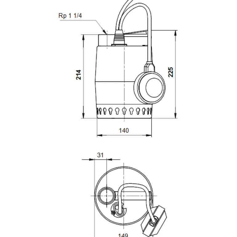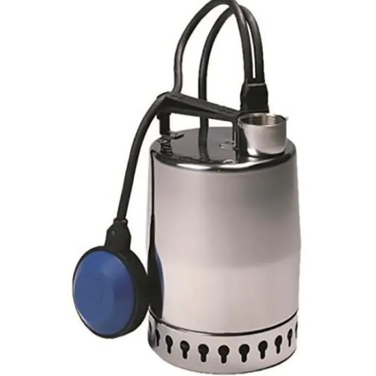 Ruostumattomasta teräksestä valmistettu upotettava pystysuora jätevesipumppu, jossa on pystysuora viemäriliitäntä ja sisäänrakennettu upotettava, yksivaiheinen ja erotuslevyllä varustettu moottori, jossa eristysluokka F ja lämpötilan valvonta. Pumppu on varustettu tuloputken suodattimella, kantokahvalla, 10 metrin moottorikaapelilla ja tasokytkimellä automaattista käynnistystä ja pysäytystä varten.