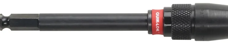 Milwaukee 140 mm QL -jatke puuporaan. Jatkokappaleessa on 7/16″ kuusiokolokiinnike.