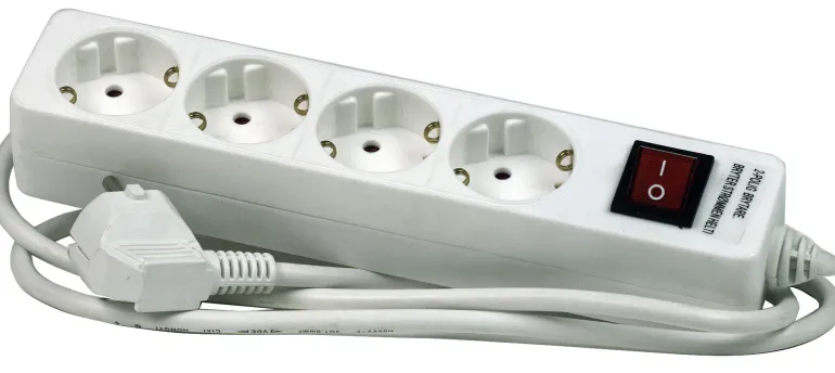 4-osainen jatkojohto, jossa 2-napainen katkaisija. Kosketussuojalla.