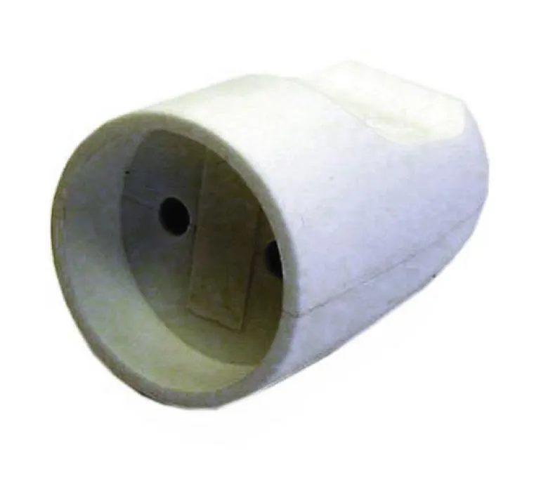 Valkoinen maadoittamaton muovinen jatkopistorasia, jossa ø 9mm kaapeliaukko.
