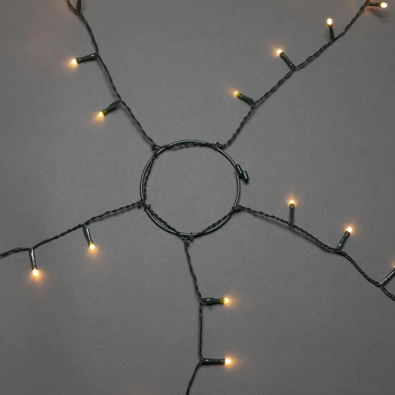 Konstsmide 6487-870 on valosarja joulukuuselle (240 cm), jossa on 5×40 amber-väristä huurrettua LEDiä. Vihreä johto, 14V/IP20.
