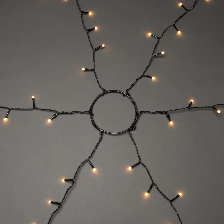 Konstsmide 6660-830 on valosarja joulukuuselle, jossa on 45×6 huurrettua LEDiä (väri amber). Musta johto, ajastin 8 h. 9V/IP44.