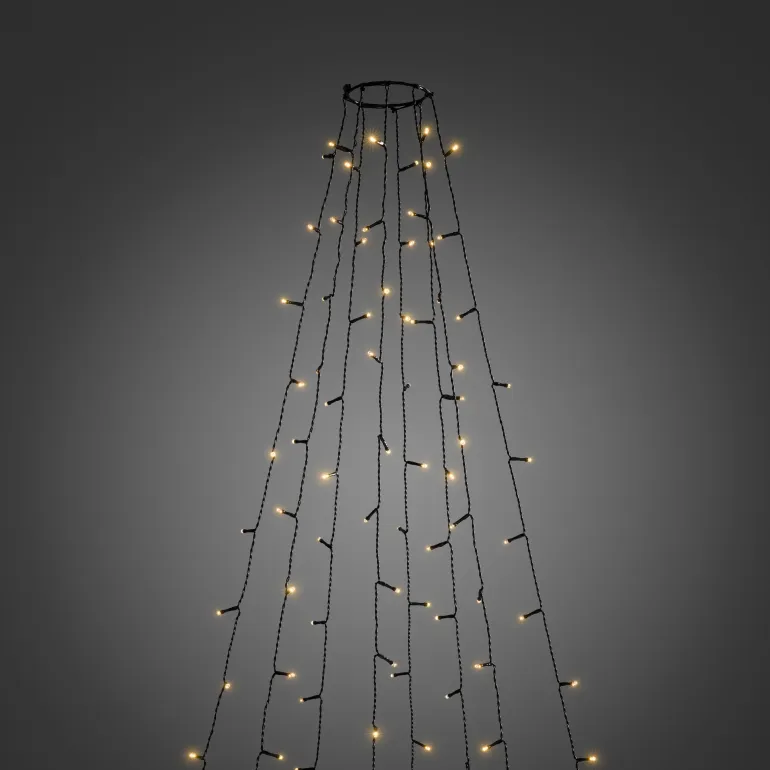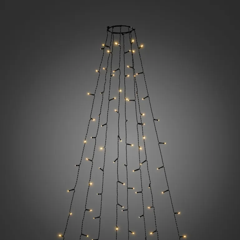 Konstsmide 6520-870 on valosarja joulukuuselle (240 cm), jossa on 8×30 amber-väristä LEDiä. Mahdollisuus ohjaukseen sovelluksella. Musta johto. 24V/IP44.