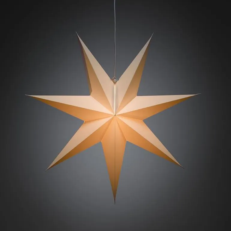 Konstsmide 2917-200 on valkoinen paperinen joulutähti. Tähti on 7-sakarainen ja halkaisijaltaan 60 cm. Ei valonlähdettä.
