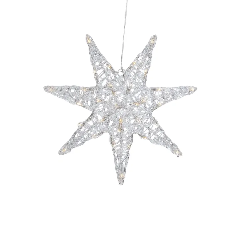 Konstsmide 6102-103 on akryylitähti, jossa on 24 lämpimän valkoista LEDiä. Läpinäkyvä johto, 24V/IP20.