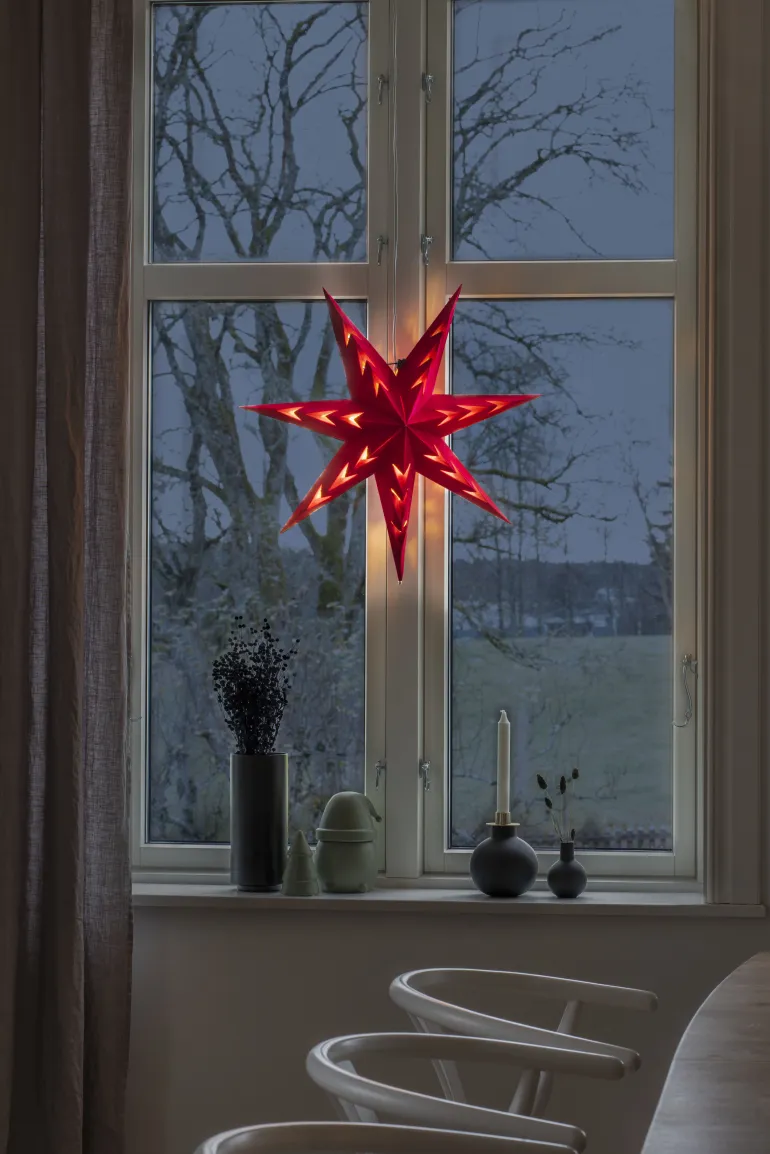 Konstsmide 5952-550 on paperitähti. 60 cm, punainen. 7-sakarainen tähti (samettia), johdollinen.