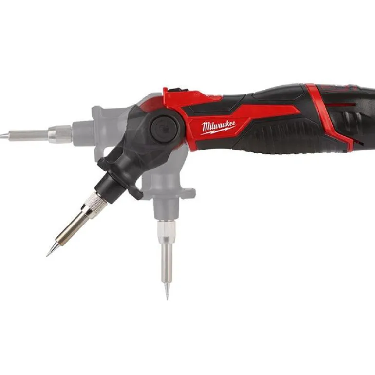 Milwaukee M12 SI-201C on 12 V:n juotin, jonka pää on lukittavissa kolmeen asentoon, jolloin juotinta voidaan käyttää halutussa kulmassa: 0°/45°/90°. Käyttövalmis 20-30 sekunnissa.