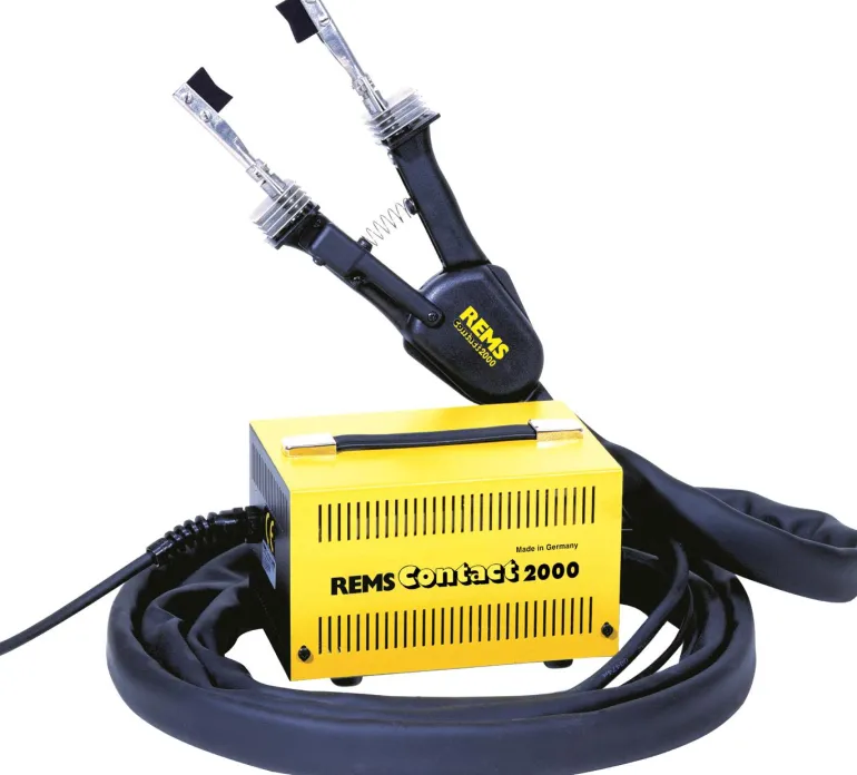 Sähköinen juotoskone kupariputkien pehmytjuottamiseen Ø6-54 mm, 1/4 -2 1/8″. Lämmitys 900º C. Juotoskone turvamuuntajalla, juotospihdit ja 4 m pitkä juotospihtien kaapeli, 2 paria prismaelektrodeja, 1 pari sauvaelektrodeja, 250 g laadukasta pehmytjuotoslankaa REMS Lot Cu 3, 250 g laadukasta pehmeää juotostahnaa REMS Paste Cu 3, 1 putkileikkuri REMS RAS CU-INOX 3-35, 10 kpl puhdistusmatto REMS Cu-Vlies. Tukevassa metallilaatikossa. Kartonkipakkauksessa.