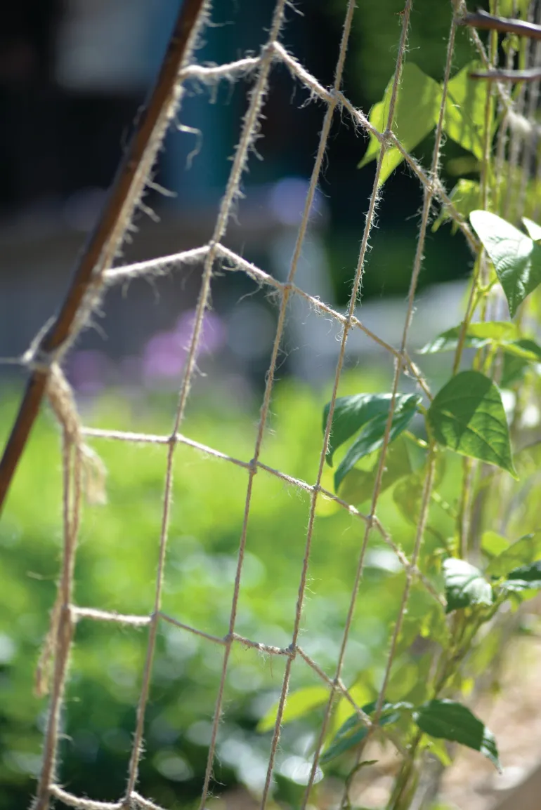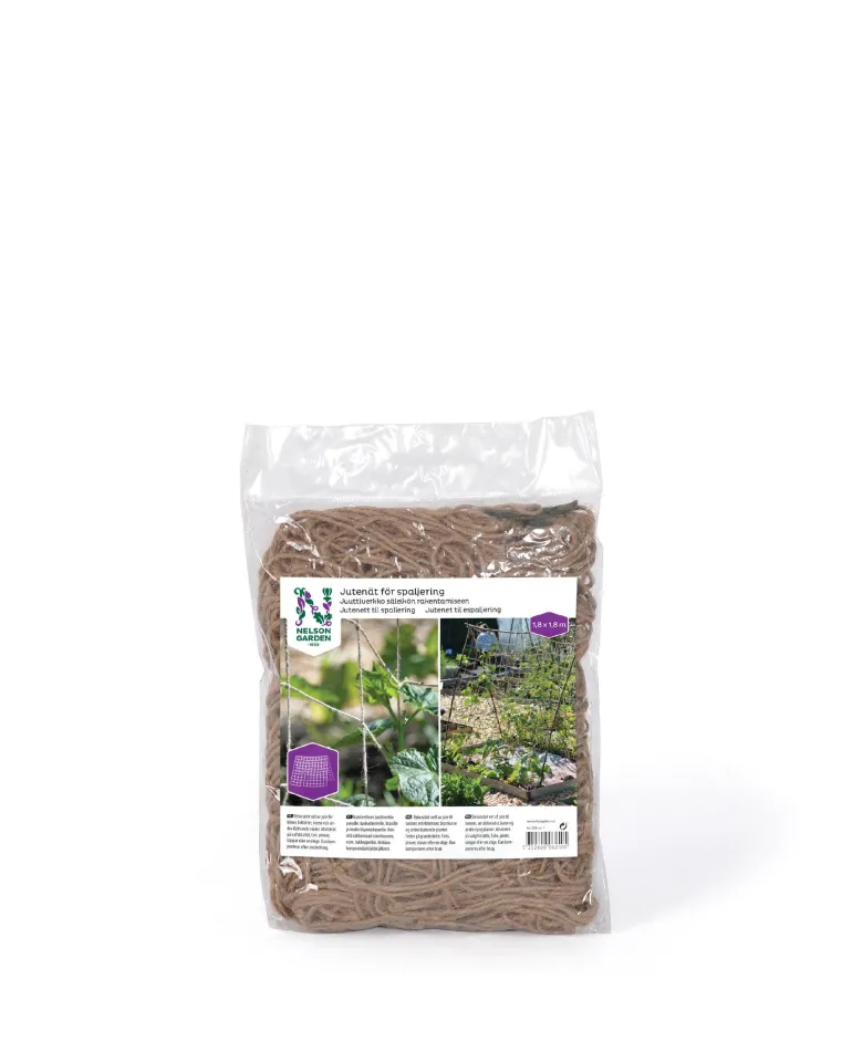 Kätevä juuttiverkko (1,8 x 1,8 m) pavuille, tuoksuherneille, krassille ja muille köynnöskasveille. Kiinnitä valitsemaasi rakenteeseen, esim. tukikeppeihin tai tikkaisiin. Voidaan kompostoida käytön jälkeen.