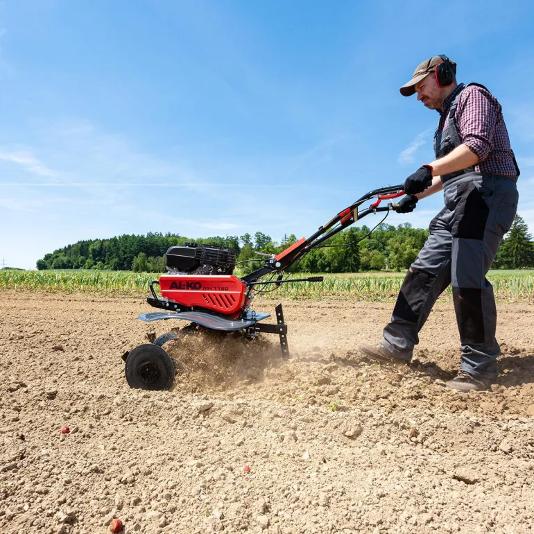 AL-KO MH 1150 on raskas jyrsintäkone, jonka työskentelyleveys on 115 cm, terien määrä 8 ja muokkaussyvyys 36 cm. Tehokasta 212 cm3: n moottoria ohjataan kahdella vaihteella eteenpäin ja yhdellä peruutusvaihteella, mikä takaa maksimaalisen suorituskyvyn kaikissa tilanteissa.